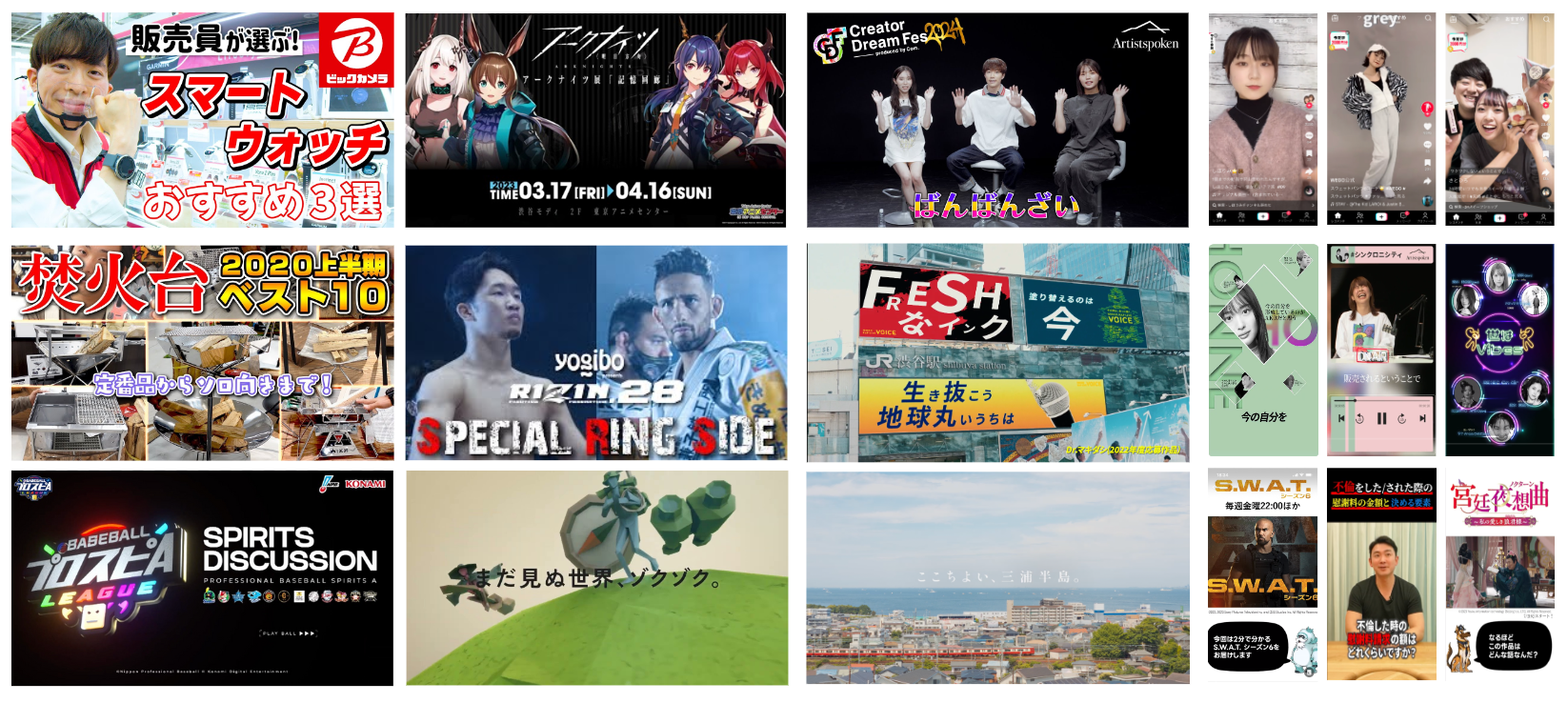 「ティザー」「イベント紹介」「機能紹介」「出演者のトーク」「番組紹介」など、多岐にわたるテーマで動画を制作し、視聴者の関心を引き付ける工夫を行いました。